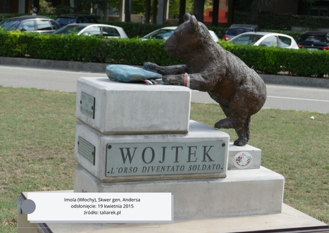 Niedźwiedź Wojtek był niezwykłym członkiem Polskich Sił Zbrojnych podczas II wojny światowej, jak wspominał prof. Wojciech Narębski, żołnierz 2. Korpusu Polskiego, weteran kampanii włoskiej: „Wojtek był jednym z nas.... nigdy nie był szkolony do pracy przy przenoszeniu czterdziestopięciokilogramowych skrzyń z pociskami. Postępowania z ładunkami nauczył się poprzez obserwację żołnierzy. Bez zachęty łapał skrzynie i przenosił je w charakterystyczny dla siebie sposób: stojąc na tylnych łapach, rozkładał ramiona, w które wkładaliśmy skrzynie z amunicją. Niedźwiedź przenosił je w pobliże stanowisk ogniowych, po czym wracał do ciężarówki po kolejną porcję ładunku. Jednak najbardziej lubił spędzać czas z nami, był zwierzęciem bardzo towarzyskim, kochał ludzi, którzy bardzo często odwzajemniali pozytywne uczucia.”